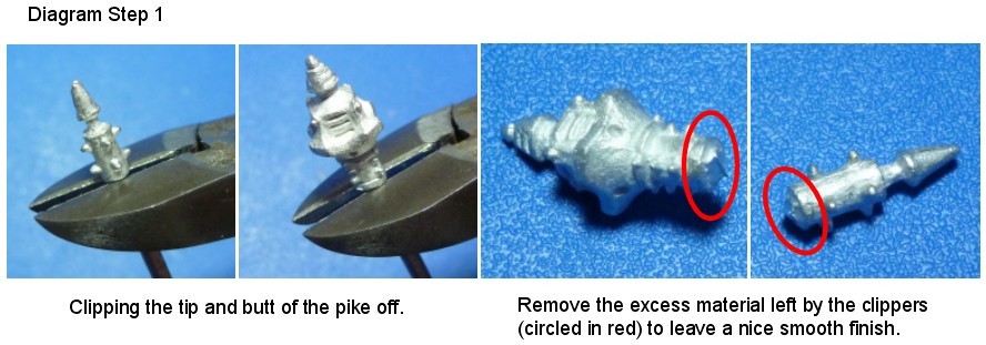 OK the basic idea is to remove the original shaft of the IFP’s pikes and replace it with a length of brass rod. Sounds simple doesn’t it.