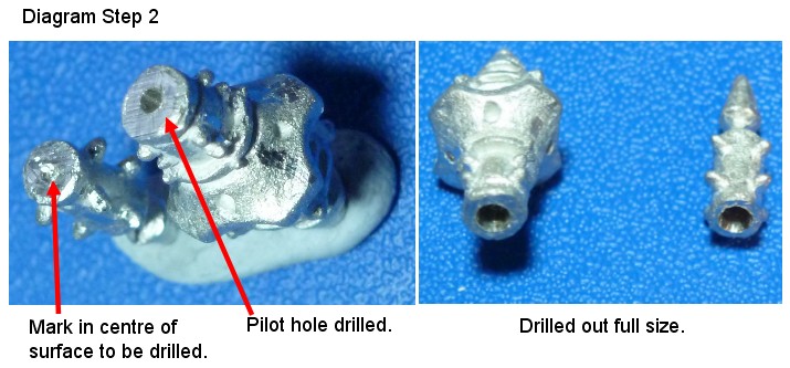 Top Tip: I drilled a pilot hole first with a 0.8mm drill bit. I then enlarged the hole with the 1.2mm drill bit. Two reasons for this, I find that drilling a pilot hole lets you be more accurate at getting the hole as close to dead centre as possible. Second reason is that you’ll find it easier drilling the larger hole if you pilot hole it first.