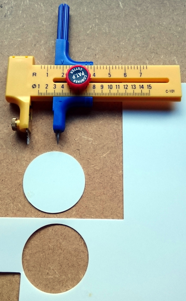Here’s my circle cutter and a circle cut out of 0.5mm plasticard.