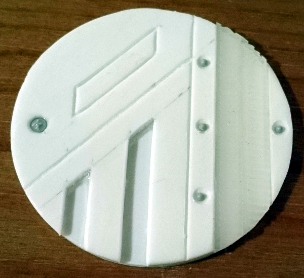 You can see how the detail of the surface is starting to build up. You can cut multiple layers to create more 3D surface. Use different thicknesses of sheets and patterns to build up lots of texture, or just score lines into the surface and have a flat 2D surface. In the base below I drilled holes and filled them with different surface details to represent sunken lights. They could just as easily represent fastenings like rivets, or power couplings. It really depends how you end up painting them in the end.