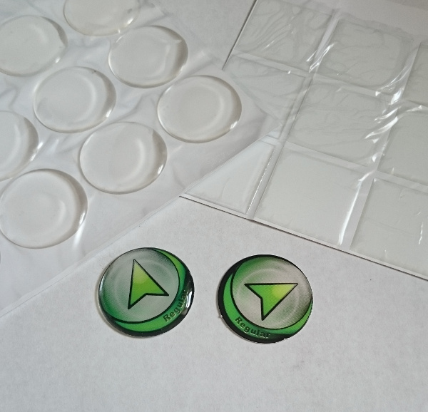 Tokens printed on the product box flaps. A 1 inch circle cutter. A circle cut from 0.55mm thick magnetic sheet.