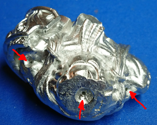 You may have already noticed in the above left image that I had already drilled the 0.8mm diameter holes in the waist and in each arm socket for the pins to hold the parts in place. I just drilled straight into the bottom of each recess.