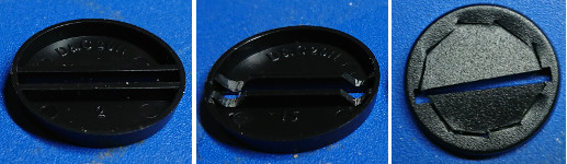 Cut a ‘v’ shaped notch at each end of the slot’s sides, if you don’t do this the base will break – trust me. I did the cutting on the first one with a craft knife, but did the others with side cutters because its faster. Once the notches are cut flip the base over, and cut a very rough circle by pushing the craft knife down onto the base.