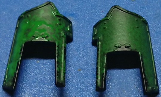 The armour plates were then base coated P3 Gnarls Green.