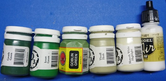 While I was buying the natural sponges from the Range, I also bought some Viridian Hue green oil paint. I’d spotted this and thought it’d be good for using with this technique and this colour scheme. I’ve used oil paints before** to add a dirty grungy look to metals, so I had some artists turpentine already; but that was also sat on the shelf in The Range (it smells less than whats probably hanging around in your garage).