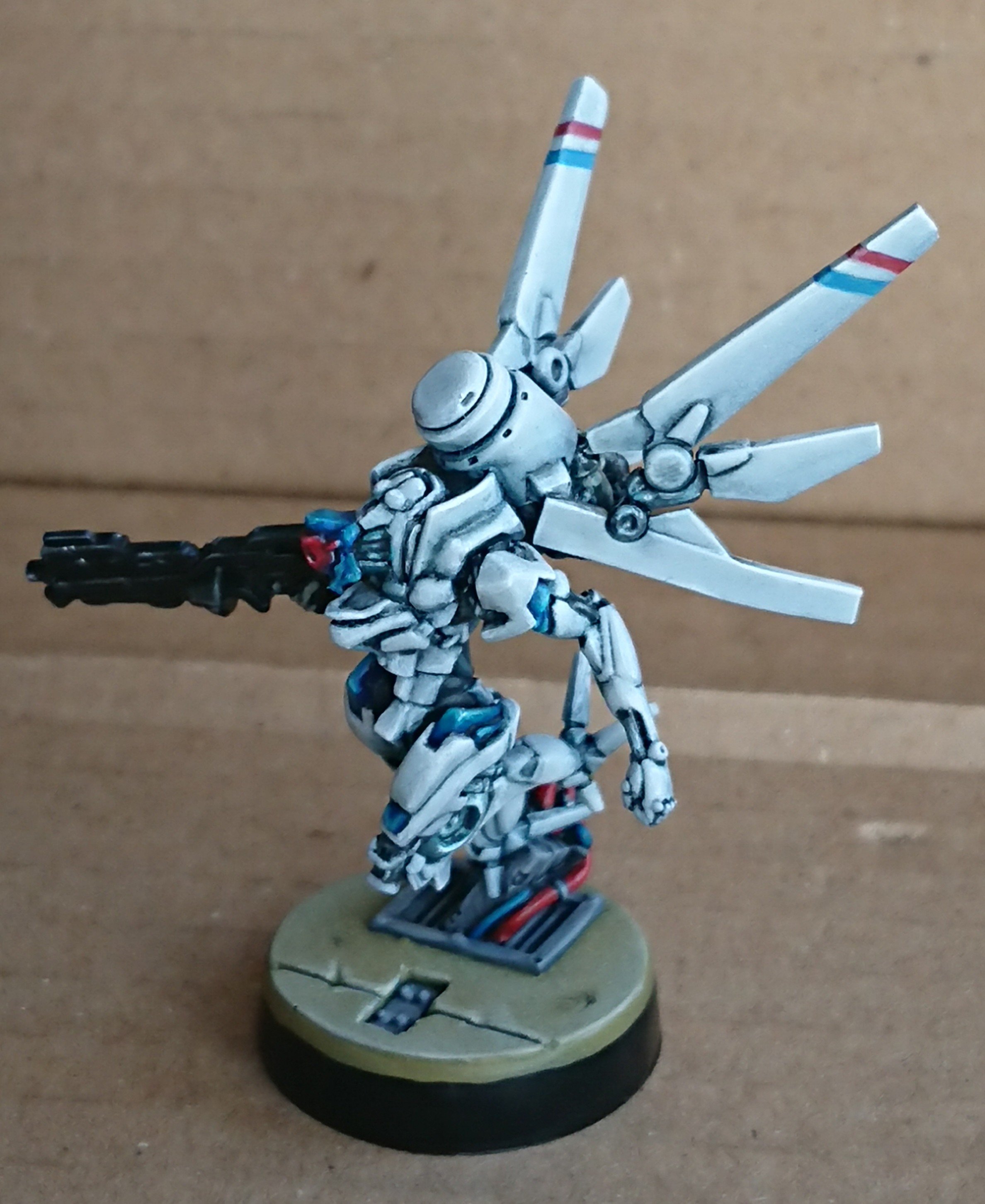 **I have used oil washes on my Privateer Press Hordes Minion Farrow beasts, here is a image of my favourite beast, who I called Mad Max. I have also used a black oil paint to get a really good looking (in my opinion) white armour plating, on my Aleph Garuda Tacbot (there is a draft blog post on my to do list for this white armour).