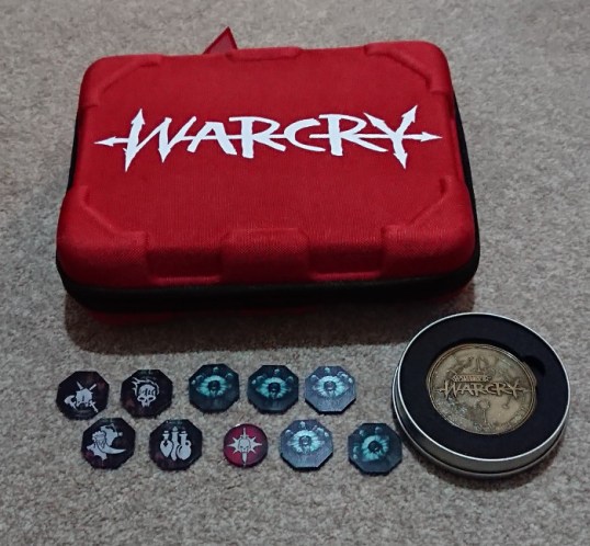 Here are the winnings, the Warcry organised play Gold Medal, a Warcry carry case provided by Rogue Games, and some acrylic tokens to replace the card ones in the Warcry set.