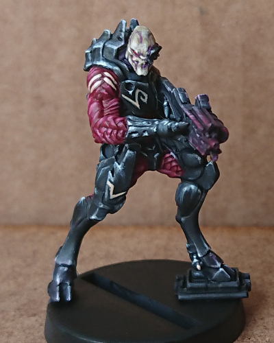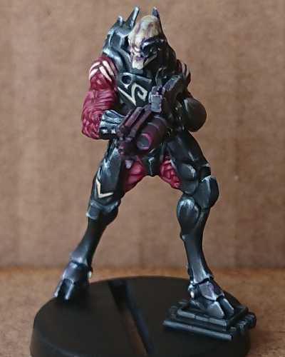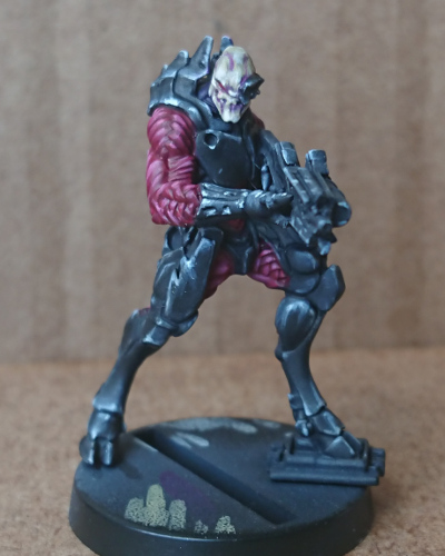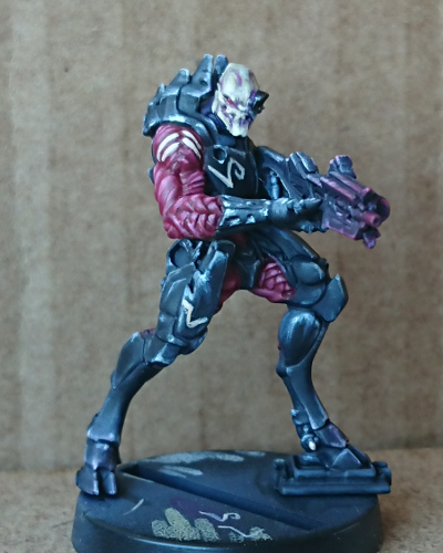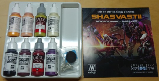 It has been a while since I last picked up an Infinity model to paint, definitely even longer since I played the game. However, an urge took hold of me and I ordered the Vallejo Shasvastii Paint Set. It helps that I’m a sucker for an exclusive miniature, but it was mostly because I wanted to try the paint scheme. That’s because I have backed the Defiance KS and I know fine well there is going to be some Shasvastii to paint. This post is about how I got on using the paint set and following the painting guide to paint the included Nox Trooper.