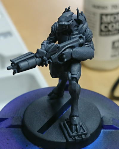 With the model glued together it was primed black and then its off to follow the painting guide. I also temporarily glued the model to a normal plastic base for painting.