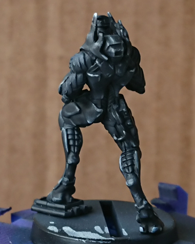 Next up was to go round and highlight and shade those armour panels. I felt a lot happier with the model after these stages, as it really started to take shape and not just an amorphous grey blob.