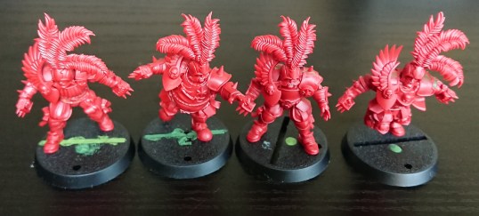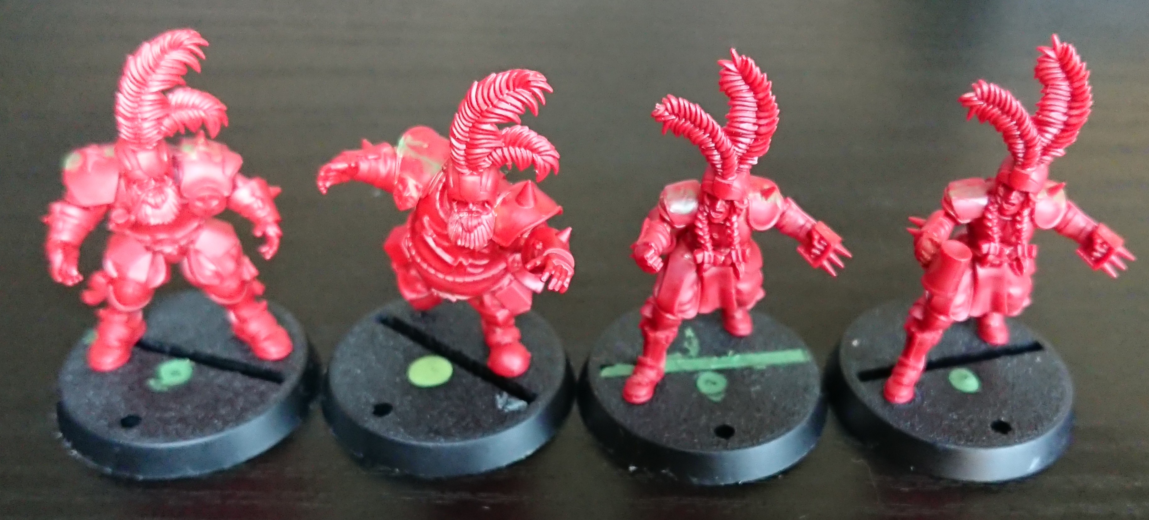 With the Linemen done I moved on to the Bodyguards. The first alternate Bodyguard was just the result of the Lineman/Bodyguard body swap. The Lineman body, with the Bodyguard’s head, hands, and winged shoulder armour. The second alternate Bodyguard used the body of the Blitzer, and again I cut the hands off to swap between the models.