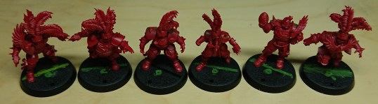 Here are the first 6 models of the team built as per the instructions. From left to right – Bodyguard, Bodyguard, Lineman, Lineman, Thrower, and Blitzer.