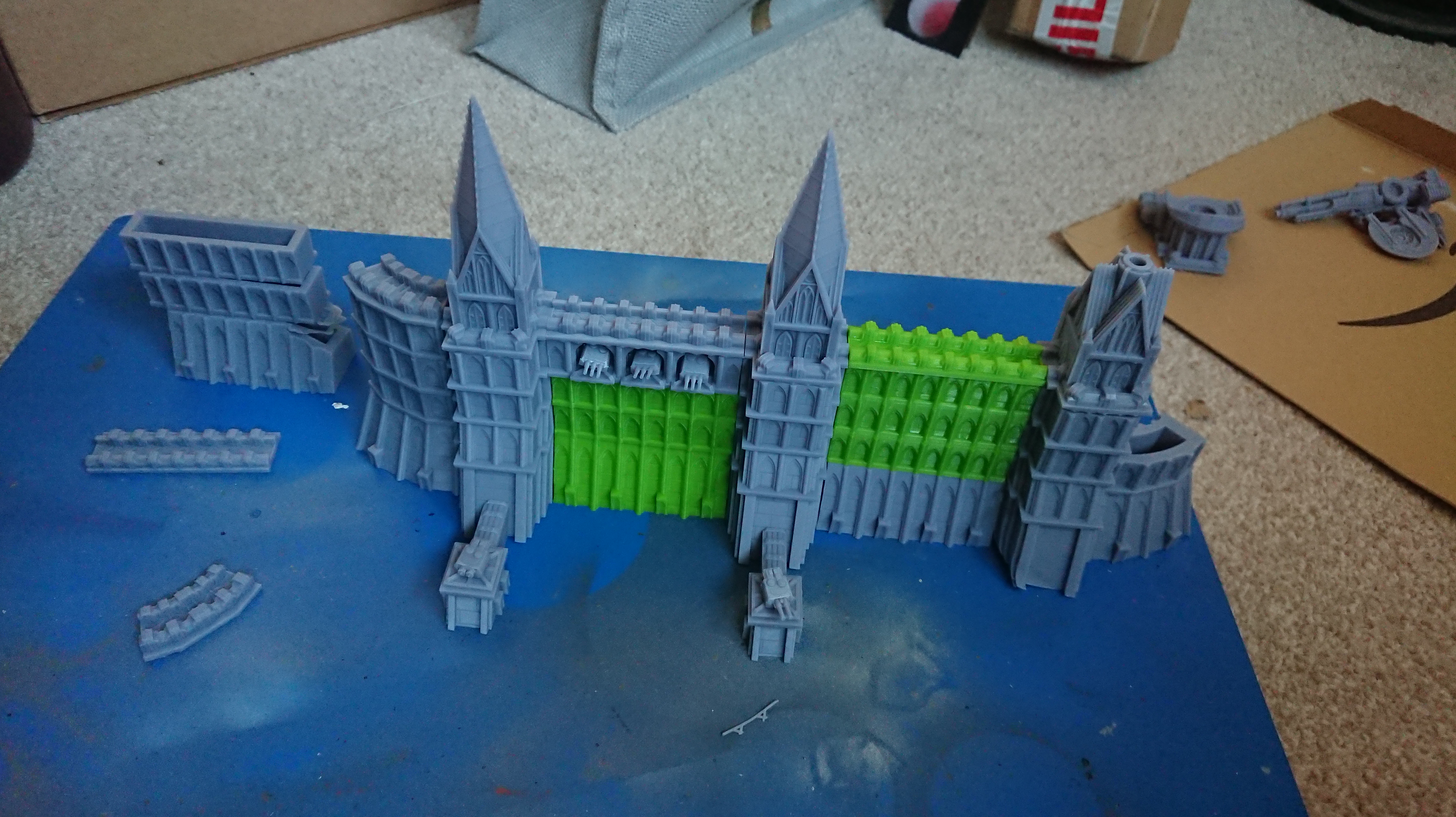 Below are some quick pictures taken over the course of the last few months, showing my current progress on the wall, printed on both my Mars and Ender printers, and also some of my own remixing of GDT towers with an eye to mounting titan weapons on top. I think it came out great.