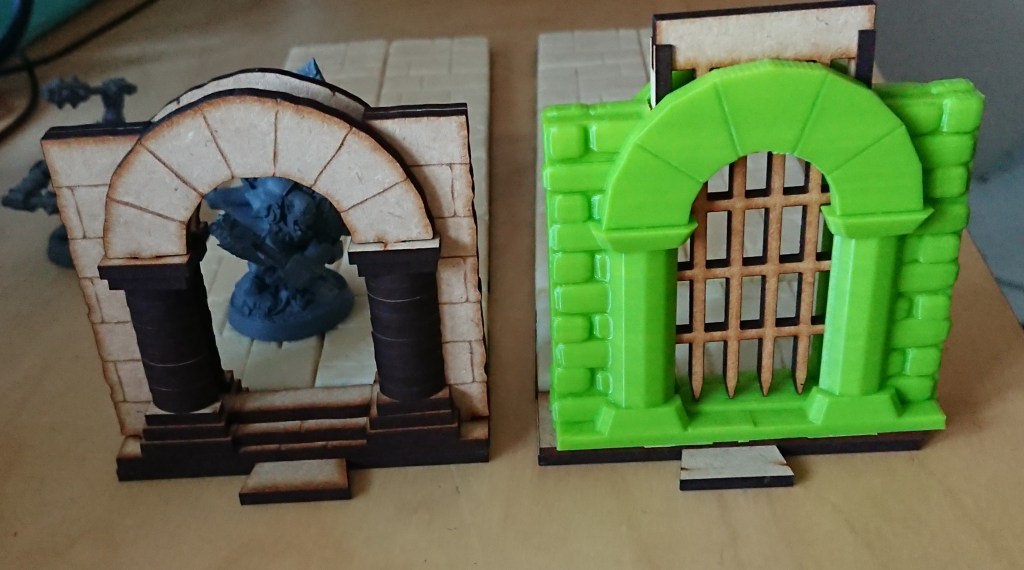 Finally, I have not forgotten about my attempt to build my own version of Warhammer Quest ’95. I have a couple of articles in work, I just need to get round to finishing them (and of course my project). However, in the mean time, I have been messing around looking at ways to make the game’s archways. I came up with two designs (so far) one I got cut by CogoTwo out of 3mm MDF, along with a portcullis. The other I created in Tinkercad and printed myself on the Ender-3.