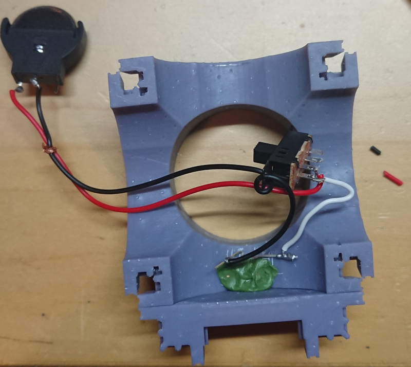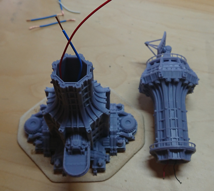 Again, there was another round of dry fitting circuitry into the tower build before any real assembly took place. Then it was time to start piecing the parts together. Before the ground floor could be assembled I need to mount the LED in place. I did this with a blob of greenstuff, and soldered the LED circuit in as well.