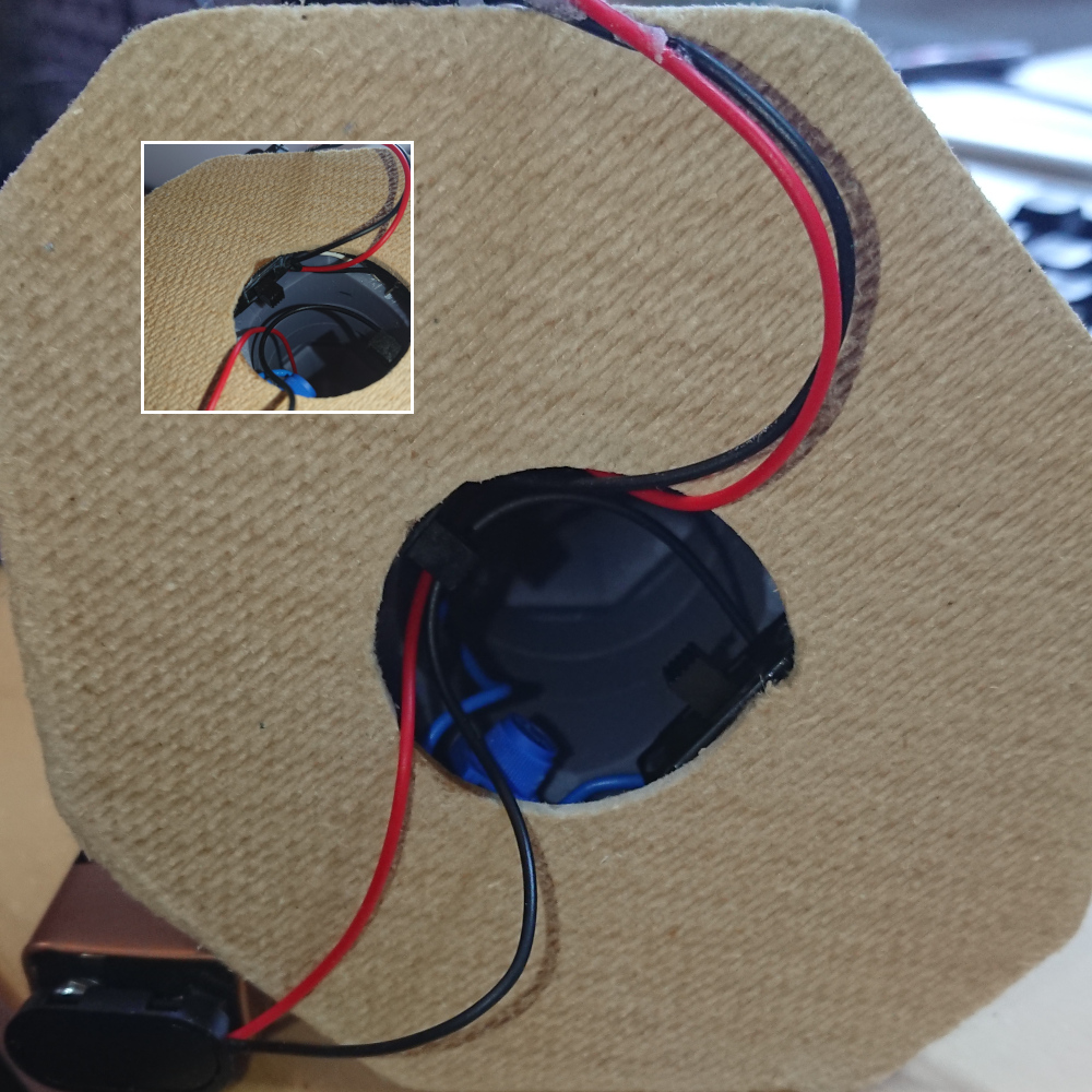Looking up underneath you can see there isn’t much room inside, while still having access to the two slide switches, the variable resistor (just in case needed) and of course to change the batteries. I have actually left the batteries just pushed up inside the tower. The stiffness of the wires, and the close fit seems to hold them in place well enough. Image below with the batteries out to show the insides as much as possible as I forgot to take pics before this point.