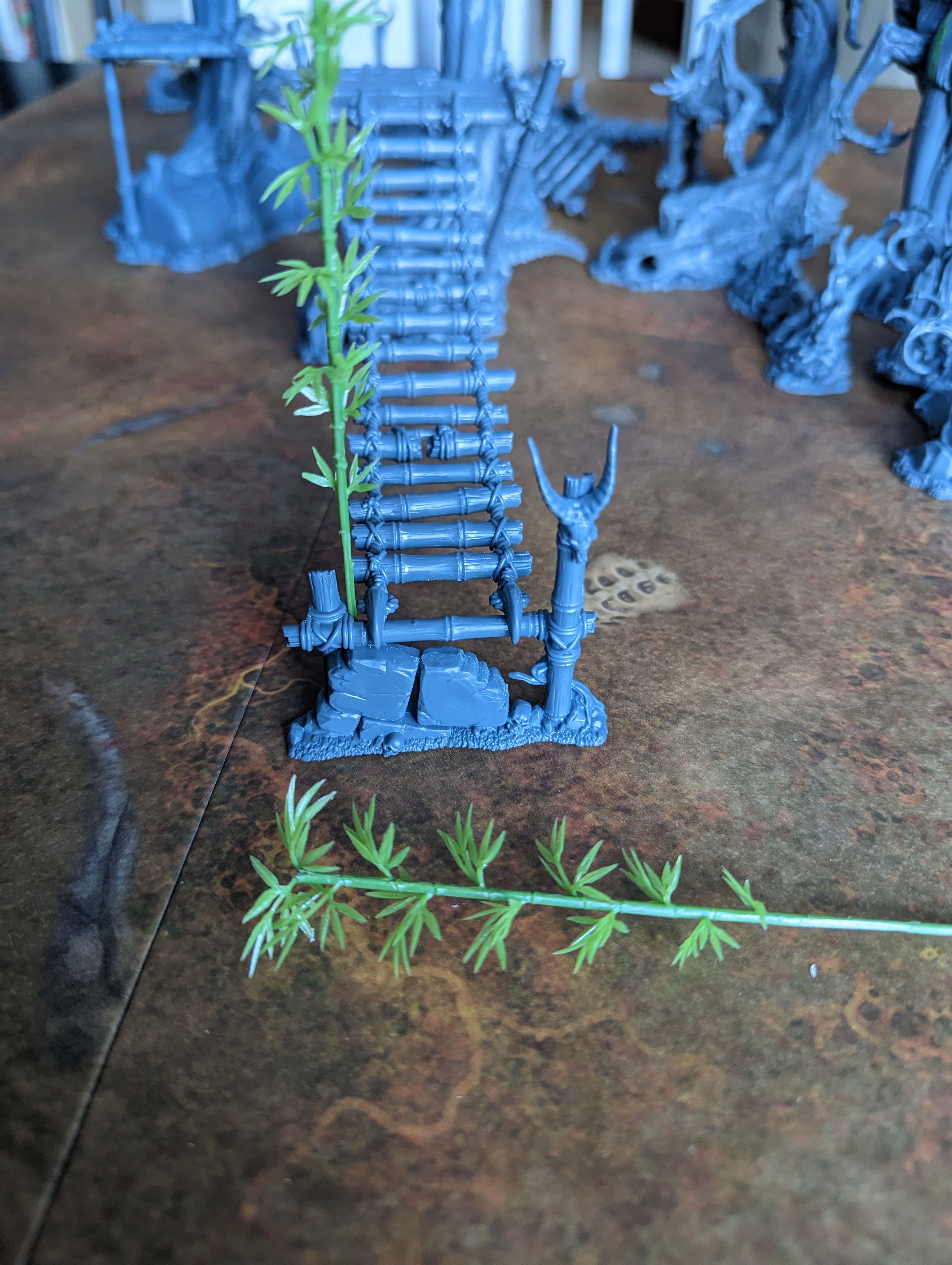 This would also allow for some interesting additions to the terrain. I have some bamboo from a previous failed hobby project, and these would fit the theme of the Ghur terrain with its oriental feel, both the Rotmire Creed, and the terrain itself using bamboo in their aesthetics.
