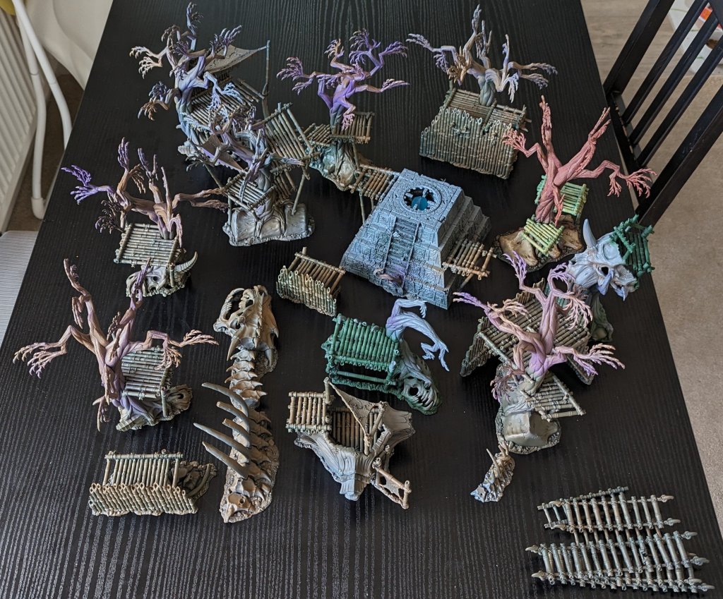 I have to admit that I have surprised myself at the sudden surge of motivation for Warcry hobbying. Its side-lined my excitement for the slightly delayed Epic revamp in the form of Legions Imperialis (I’ll blog about my epic hobbying at some point). I now have the whole set of 4 boxes* worth of Gnarlwood terrain assembled. Plus an additional terrain piece which fits in with the Gnarlwood theme in my opinion, the Megadroth Remains (EG link). And…