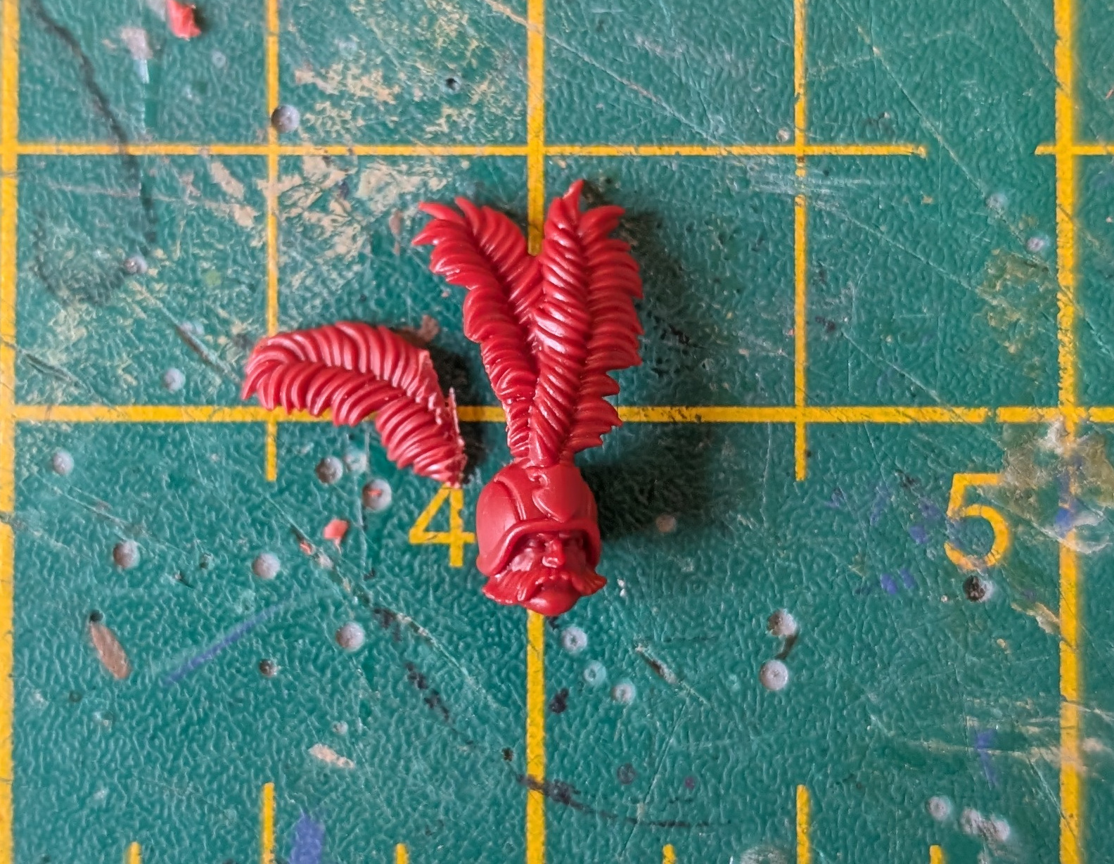Head 1 – I removed the two feathers from the female line(wo)man’s helmet as well as the Blitzer’s four feathers, and simply glued the two feathers on the Blitzer’s helmet instead of the four feathers.