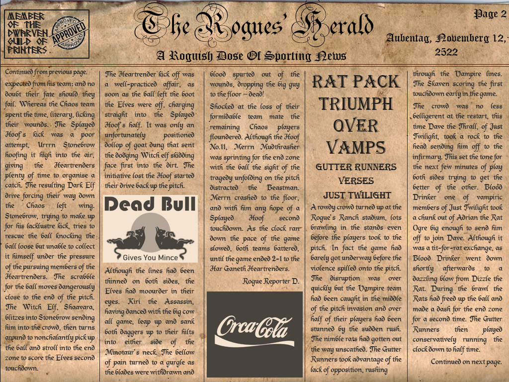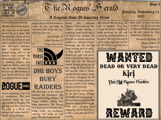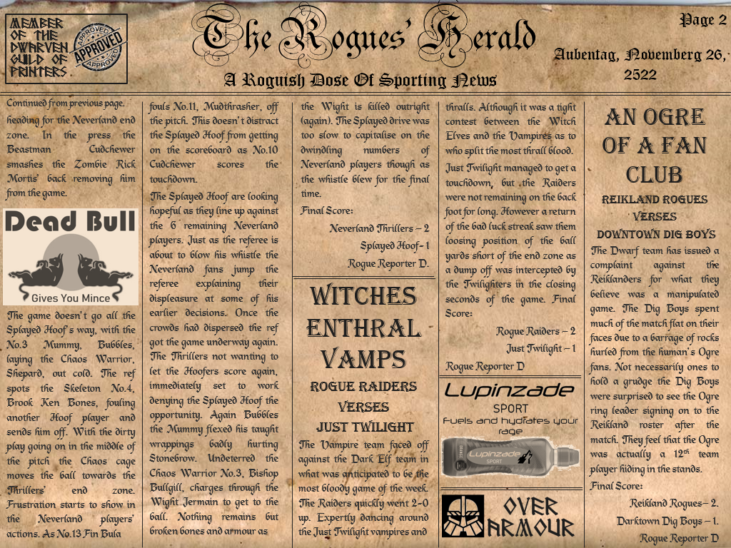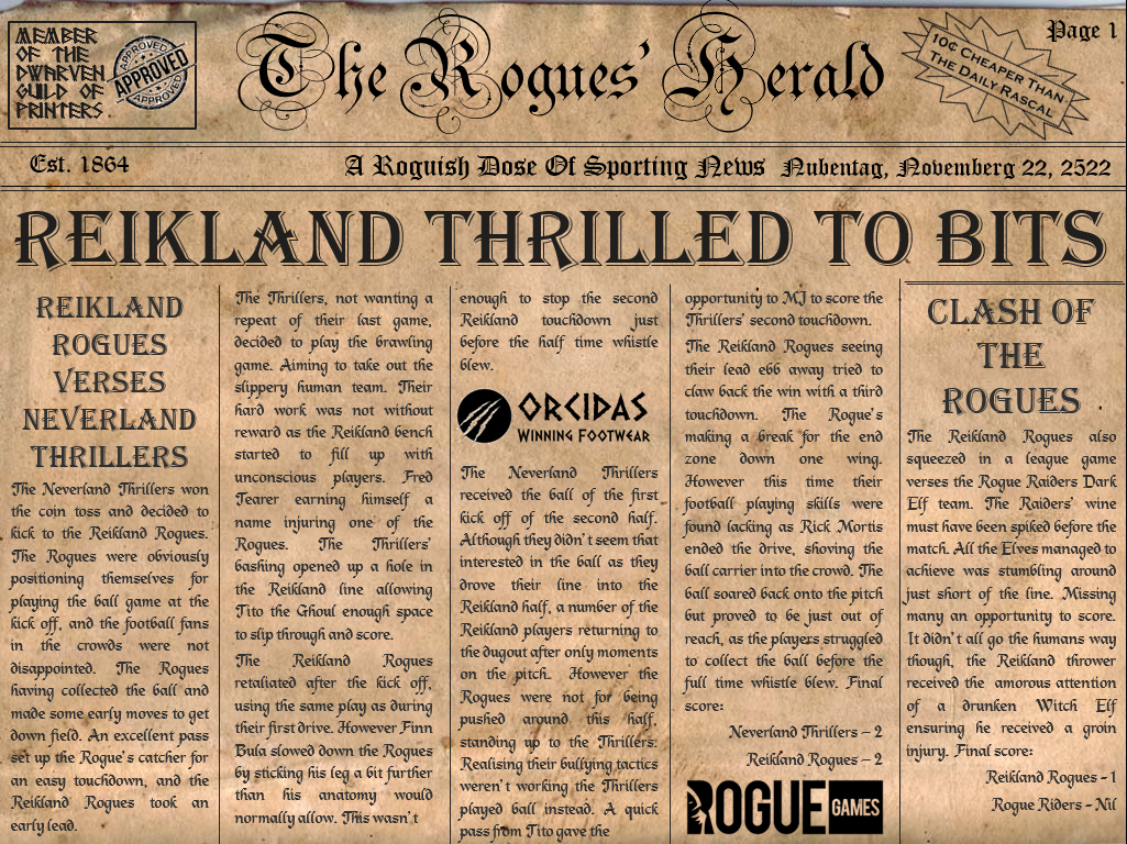Some ‘newspaper coverage’ for the Rogue Games Blood Bowl League. The League started on the 29th October, if you’re quick you could maybe join in too if you live in the Leyland area, pop in and get involved – or register your interest on the FB group.